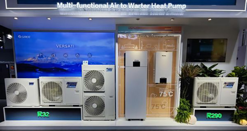 Большое внимание на Кантонской ярмарке привлекли тепловые насосы Gree. В связи с глобальными целями сокращения выбросов углекислого газа тепловые насосы стали новым направлением в области отопления с использованием новых источников энергии. Быстро появилось применение экологически чистых хладагентов, таких как R32 и R290. Как ведущая компания в области ОИК, Gree постоянно внедряет инновации в области производства тепловых насосов и разрабатывает серии продуктов, таких как тепловые насосы для нагрева воды, тепловые насосы для подогрева воды в бассейнах и геотермальные тепловые насосы.